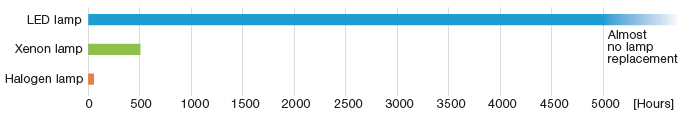The Optera processor (CV-170) is equipped with a built-in light source that uses LED lamps. LED light source offers 50% higher brightness than a 150 W halogen lamp. It achieves the sufficient level of brightness for observation in gastrointestinal tract. In addition, since it has much longer lifetime, you rarely have to change the lamp. So both maintenance time and running costs are minimized.